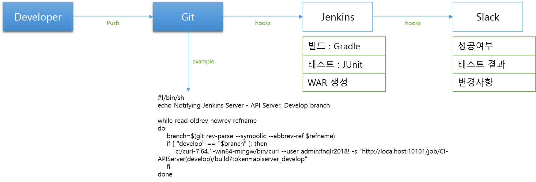 - Git은 hook을 하여 Jenkins에 빌드 시작을 알린다.