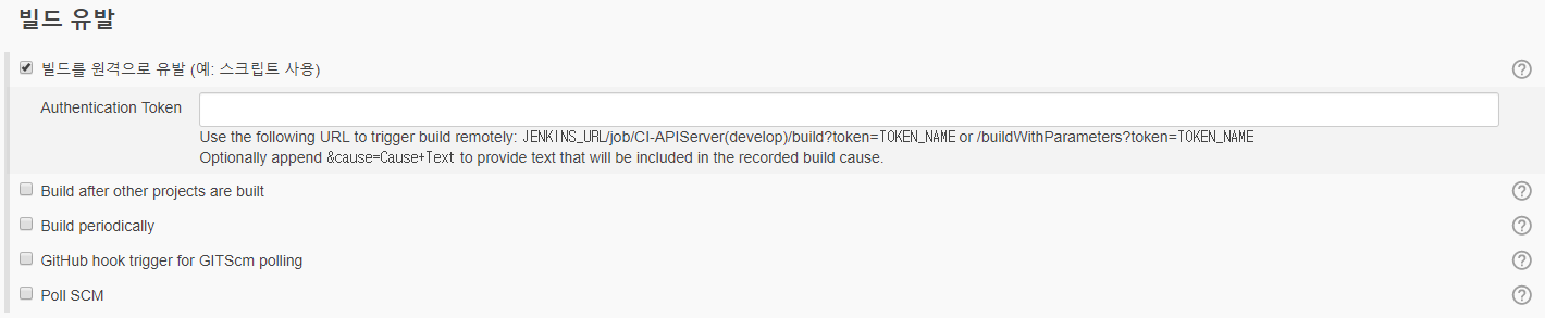 Git에서 접근할 Authentication Token을 설정하고 Git에 post-receive hook을 설정합니다.